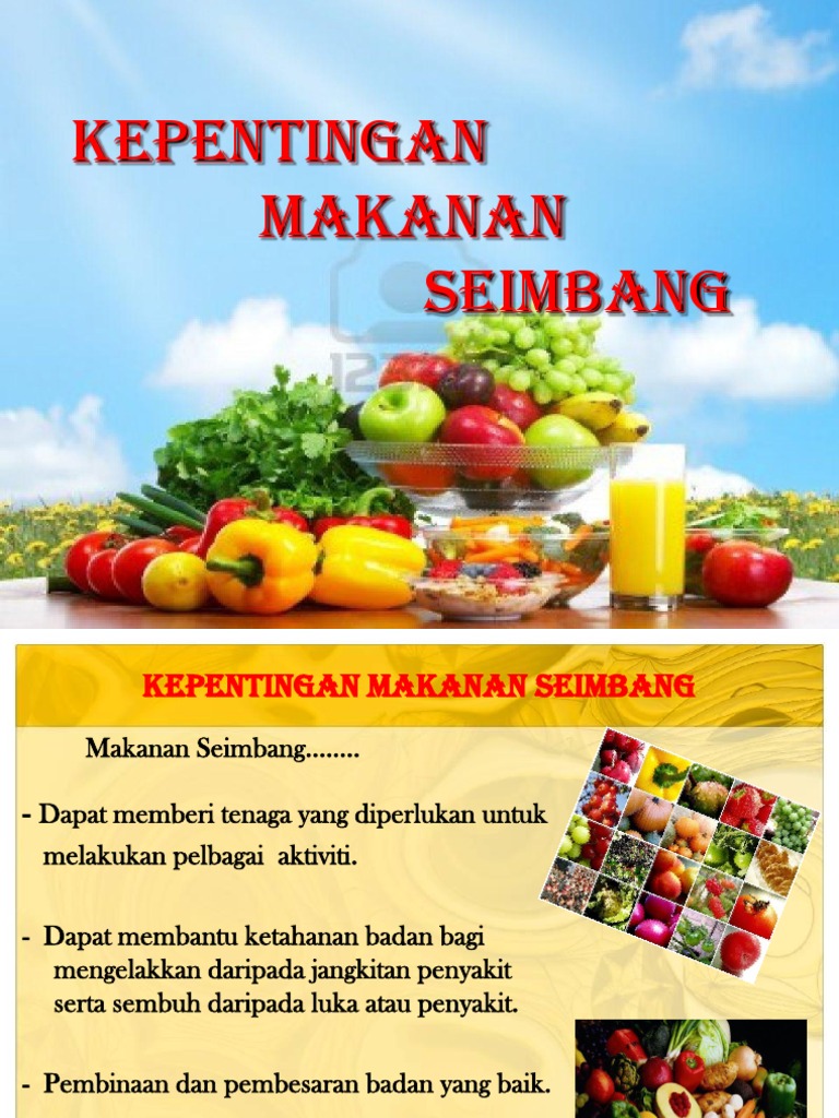 2-4 hidangan dari kumpulan buah-buahan. Faedah amalan pemakanan seimbang 7. Dalam proses pertumbuhan ianya penting untuk menerima nutrien yang betul supaya sel-sel dibina dan dijaga serta tumbuh.